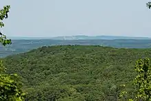 The Manistee National Forest is a national forest located in the Lower Peninsula of Michigan. It has a total area of 540,187 acres (2,190 km2). It was established in 1938, and combined with the Huron National Forest in 1945 for administrative purposes, creating the Huron-Manistee National Forests. However, they are two separate forest units, as they are not connected.[2] The area is popular for hiking, fishing, camping, boating, snowmobiling, cross-country skiing and hunting. The North Country Trail passes through it, and connects with the 11-mile Manistee River Trail to form a 23-mile loop. The highest point in the lower peninsula, Briar Hill (1,706 ft), is located here. The Manistee National Forest is not one continuous mass, but is a "mosaic" broken by private property and towns. The headquarters for the forest is in Cadillac, Michigan.