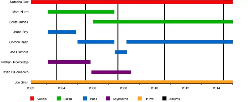| Members | Natasha Cox (2002–) Jon Siren (2002–) Gordon Bash (2005–2007)(2008–) Scott Landes (2006–) Mark Nurre (2003–2007)(2021–) |