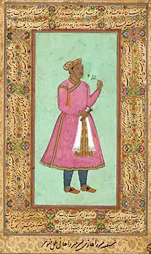 "Likeness of Mirza Ghazi, son of Mirza Jani". Made by Manohar, a Mughal painter at the Tarkhan Court in the province of Thatta, circa 1610.[1]