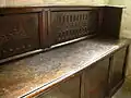 Oak bench from home of Thomas Chippendale, possibly made by him or his father: closeup.