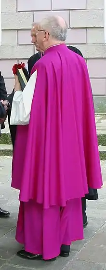 It was likewise ordinary choir dress for several classes of monsignor, the so-called prelates di manteletta: the protonotaries apostolic de numero (the highest class of monsignor), domestic prelates (now called "prelates of honor") who are also addressed as "monsignor," and others who had been granted the privilege to wear it, including auditors of the Sacred Roman Rota and a few other high functionaries of the Vatican if they were not bishops. Certain chapters of canons have also been specifically granted the privilege.
