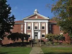The original 1914 Mantua Center School is an example of Neoclassical architecture, prominent in the United States during the early 20th century. The building was designed by architect Peter T. Cahill, who was based in Cleveland at the time, and the general contractor was Loomis, Seymour, and Company. The original building cost $32,500 ($879,000 in 2021 dollars[5]) and had 12,000 square feet (1,100 m2) of space on three levels with seven classrooms on the top two floors and small gymnasium and cafeteria areas on the lowest levels. The building also contained indoor restrooms, located in the basement, which were unusual for rural buildings in the early 20th century.[2]