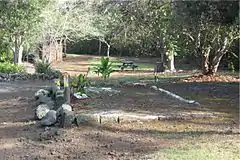 The name means "blundering" in the Hawaiian Language, and was the name of the ancient land division (ahupaʻa) that ran from a bay on the southwest side of the island up the slopes of the Mauna Loa volcano.[1] The arboretum of 8 acres (3.2 ha) was originally planted in the mid-19th century with native and introduced plants. It now contains 48 species of native Hawaiian plants and more than 130 species of other exotic plants and flowers, and is surrounded by the 25,550-acre (10,340 ha) Manuka Forest Reserve.[2]