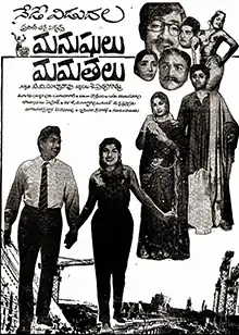 Manushulu Mamathalu (transl. Human Effections) is a 1965 Indian Telugu-language drama film, produced by A. V. Subba Rao under the Prasad Art Productions banner and directed by K. Pratyagatma. It stars Akkineni Nageswara Rao, Savitri and Jayalalithaa, with music composed by T. Chalapathi Rao. Director Tatineni Rama Rao worked as associate director for this film. This is remembered as Jayalalithaa's debut film in Telugu and also her first pairing with Akkineni Nageswara Rao. This was the first Telugu film to get an A certificate from the Censor Board.[1]