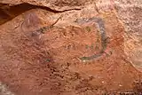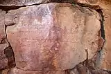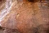 The Manyana Rock Paintings are a collection of rock art and caves located at the Kolobeng hills, neighbouring Manyana, Southern District, Botswana. It is believed that the artworks were made by the Khoikhoi or the San people between 1100 AD and 1700 AD.[1] The paintings are found on five cliff areas around the rocky hill.[2] Today, the site is fenced and protected as a National Monument.[3][4]