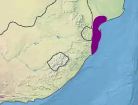 The Maputaland coastal forest mosaic is a subtropical moist broadleaf forest ecoregion on the Indian Ocean coast of Southern Africa. It covers an area of 29,961 square kilometres (11,568 sq mi) in southern Mozambique, Eswatini, and the KwaZulu-Natal Province of South Africa. Mozambique's capital Maputo lies within the ecoregion.[2][3][4]