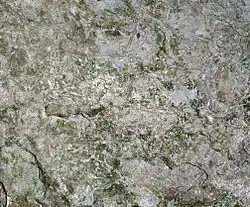 Overlying the Scales Formation is the Fort Atkinson Formation, which has been informally called the Middle or Divine Limestone by drillers. The Fort Atkinson is a dominantly a red, gray, and white coarse crystalline dolomite with thin beds of green and gray shale. It contains many invertebrate fossils, such as brachiopods and abundant corals. It ranges from 0 to 60 feet in thickness but is typically 40 to 50 feet thick.