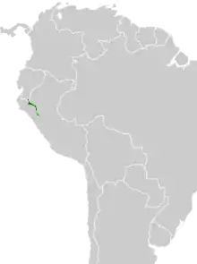 The Maranon pigeon is found from extreme southeastern Ecuador southeast into Peru as far as the Department of La Libertad. It seasonally moves between riparian forest and dryer upslope forest. In elevation it ranges from 850 to 2,400 m (2,790 to 7,870 ft).[6]