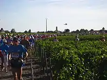 The Marathon du Médoc is a French marathon race, created in 1985, held every year in September through the vineyards of the Médoc in the Gironde. It is considered "the longest Marathon in the world" because the race is interspersed with several activities: musical breaks with 50 orchestras scattered around the course, 23 wine tasting stops,[1] oysters tasting at the 38th kilometer, and steak at the 39th kilometer.