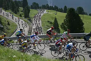 The Maratona dles Dolomites (Ladin for "Dolomites Marathon"; Italian: Maratona delle Dolomiti), is an annual single-day road bicycle race covering seven mountain passes in the Dolomites. Open to amateur cyclists, the Maratona—with 9,000 riders from over 70 nations—is one of the biggest Italian Granfondo bicycle races.[1] National Geographic described it as "one of the biggest, most passionate, and most chaotic bike races on Earth."[2]