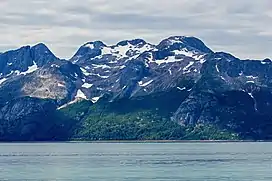 Marble Mountain is a 3,366-foot (1,026-meter) mountain summit located in the Fairweather Range of the Saint Elias Mountains, in southeast Alaska.[2] The peak is situated in Glacier Bay National Park and Preserve at the entrance to Geikie Inlet, 68 mi (109 km) west-northwest of Juneau, and 10.7 mi (17 km) east-northeast of Blackthorn Peak. Although modest in elevation, relief is significant since the mountain rises up from tidewater in Shag Cove in less than one mile. The mountain's name was in local use as reported by the United States Geological Survey in 1951.[2] Marble Mountain can be seen from Glacier Bay which is a popular destination for cruise ships. The months May through June offer the most favorable weather for viewing and climbing Marble Mountain.
