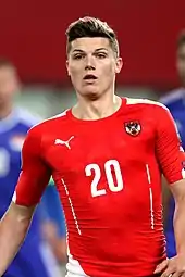 Scores and results list Austria's goal tally first, score column indicates score after each Sabitzer goal.[20]