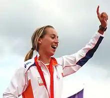 Marcelien Bos-de Koning (born 10 May 1978) is a Dutch three-time world champion and Olympic silver medalist sports sailor.[1][2] She represented her country at the 2008 Summer Olympics in Qingdao. With crew member Lobke Berkhout Bos-de Koning took the silver medal as helmsman in the Women's 470.[3][4] Bos-de Koning returned as crew member to the 2012 Olympic match regatta's in Weymouth in the Elliott 6m.[5][6] With helmsman Renee Groeneveld and fellow crew member Annemieke Bes Bos-de Koning took 8th place.[7]