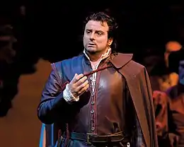 Giordani was born on 25 January 1963 in the small town of Augusta, Sicily. His father, a former prison guard, was the owner of a major gasoline station in the town, and his mother was a housewife.[1] He showed a talent for singing at an early age and took private lessons in Augusta as well as singing in a church choir. When he was nineteen, he quit his job in a bank.[2][1] He studied voice first in Catania and from 1983 in Milan[3] with Nino Carta.[2] Giordani made his professional operatic debut in 1986 as the Duke in Rigoletto at the Festival dei Due Mondi in Spoleto.[4][5] His debut at La Scala came two years later when he sang Rodolfo in La bohème.[3] He went on to sing throughout Italy and Europe, and in 1988, he made his American debut singing Nadir in Les pêcheurs de perles with Portland Opera,[5] a company with which he frequently appeared early in his career. Engagements with several other American opera companies followed, including San Francisco Opera, Seattle Opera, Los Angeles Opera and the Opera Company of Philadelphia. He performed at the Vienna State Opera first in 1992 as Sänger in Der Rosenkavalier by Richard Strauss, and appeared there in 14 roles in 72 performances.[4] Giordani made his Metropolitan Opera debut in 1993 as Nemorino in a Parks performance of L'elisir d'amore opposite Maria Spacagna as Adina.[6] His first performance on the actual stage at the Metropolitan Opera House was on 11 December 1995 as Rodolfo to Hei-Kyung Hong's Mimì with Carlo Rizzi conducting.[2][6]