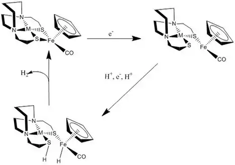- Lyon, Erica J; Zhao, Xuan; Georgakaki, Irene P.; Darensbourg, Marcetta Y. (2003). "The Organometallic Active Site of [Fe]hydrogenase: Models and Entatic States". Proceedings of the National Academy of Sciences of the United States of America. 100 (7): 3683–3688. Bibcode:2003PNAS..100.3683D. doi:10.1073/pnas.0536955100. PMC 152982. PMID 12642671.