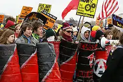 The March 17, 2007 anti-war protest was an anti-war demonstration sponsored by ANSWER Coalition that marched from Constitution Gardens in Washington, D.C. to The Pentagon in Arlington, Virginia. The date was selected to coincide with the fourth anniversary of the invasion of Iraq, and also the 40th anniversary of a similar anti-war march on October 21, 1967. Organizers estimated 15,000 to 30,000 protesters attended, while the police gave informal estimates of 10,000 to 20,000.[1]