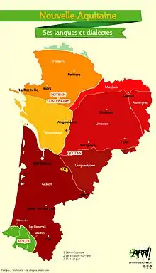 It forms the western two-third of the Croissant region where the languages oscillate between Occitan language in the south and Oïl languages in the north,.[7][8]