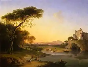 There is no record of his activity as a landscape painter until 1807, when he signed a contract with Count De Breme, then Minister of the Interior of the Kingdom of Italy, for the execution of four views of Lombardy a year in return for a government pension. His painting was transitional: he still aimed to depict an imaginary and romantic Arcadian and had not yet moved to attempt topographical depictions of the rustic landscape.
