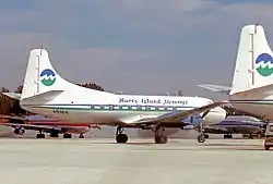 The Marco Island Airways fleet initially consisted of six Martin 4-0-4 twin-engine pressurized piston-engine 44-seat airliners (shown in heading image), five examples being operated as at March 1985.[3] Three of the smaller twin turboprop Beech 99 (N1921T, N1922T, N1923T) were included in the fleet in 1973. Four Piper PA-31 Navajo eight-seat airliner was also operated in the early 1980s.[4]