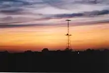The site still includes a prominent local landmark, a 360-foot (110 m)-high (110 m) former Chain Home radar tower visible across the surrounding countryside.[4] The last remaining tower maintaining all of its platforms, the tower was given a Grade II listed status by Historic England in October 2019.[5]
