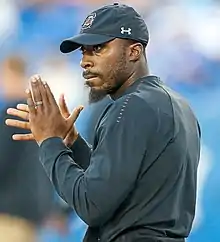 Marcus Lattimore (born October 29, 1991) is a former American football running back. He played college football at South Carolina, where he holds the career record for rushing touchdowns (38).[1] He rushed for 1,197 yards as a starter during his freshman year.[1] His sophomore and junior years were truncated by severe knee injuries. He opted to forgo his senior year and was drafted by the San Francisco 49ers in the fourth round of the 2013 NFL Draft. He never played a game for the 49ers and retired from playing football at the age of 23. In 2016, he was named head football coach at Heathwood Hall prep school in Columbia, South Carolina. He served as the Director of Player Development for the South Carolina Gamecocks from 2018–2019.