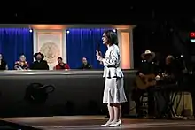 Because of the detailed and accurate research behind her books, she has been a featured interviewee on A & E Biography (Henry VIII: Scandals of a King, 1996, and Elizabeth: The Virgin Queen, 1996) and a special on Alexandria (Cleopatra's World: Alexandria Revealed, 1999).[11] She has also spoken at the Folger Shakespeare Library,[12] Hampton Court[13][14] the Tower of London,[15] and twice at the Library of Congress's National Book Festival (2011, 2019).