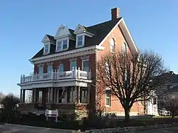 Margaret and George Riley Jones House, also known as the Riley-Jones Club, Inc., is a historic home located at Muncie, Delaware County, Indiana. It was built in 1901, and is a 2+1⁄2-story, "L"-plan, Colonial Revival style frame dwelling sheathed in brick. It features a gable roof with dormers, arched windows, and full-width front porch with mosaic tile floor. It housed a private women's club.[2]: 2 The club closed in 2003 and the building now houses law offices.[3]