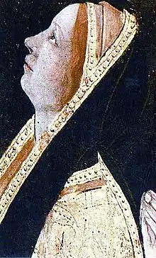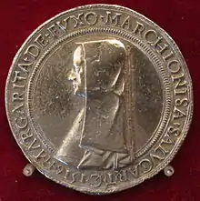 Margaret was the youngest daughter of John de Foix, 1st Earl of Kendal[1] and Margaret Kerdeston. In 1492 she married to Louis II Margrave of Saluzzo.[1] Marchioness Margaret accompanied her niece, queen Anna of Foix-Candale in 1502 from Saluzzo to Venice in the wedding tour from France to Hungary, when Queen Anne visited her paternal relatives in Saluzzo.[2] While being in her second pregnancy, Queen Anne asked her aunt, Margaret to come to Buda in 1506.[3] The Marchiones at that time after her husband's death, acted as a regent of Marquisate of Saluzzo in the name of her first-born son, Michele Antonio. Her four surviving sons who all inherited the marquisate in the order of primogeniture.