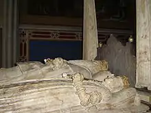 Grave monument to Margaret, Gustav and his first wife Catherine (far side) over their crypt in Uppsala Cathedral