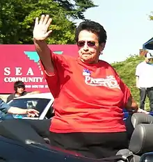![]() Prentice during 2008 Fiestas Patrias parade, South Park, Seattle, Washington. | |