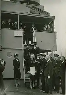 Johnsen received several decorations for her war effort.[14] She is the only female recipient of the Norwegian military award St. Olav's Medal with Oak Branch.[15][16] For having served more than 18 months on merchant vessels in dangerous areas, Johnsen was awarded the War Medal. Her effort on MV Talabot was honoured by the British with the British Empire Medal "for without fear having served coffee and other refreshments to sailors on the bridge and by the guns during a severe air raid on the ship while it was heading for Malta."[7]