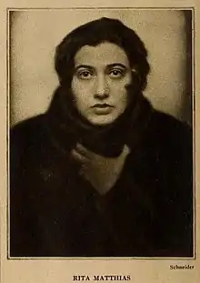 Marguerite Julie Strauss, also known as Rita Matthias, (1888 – June 25, 1961)[1] was an actress and translator. Strauss began her acting career performing on the stage in New York City, as well as across Europe.[2] Her theatrical connections led to a career as a translator, focusing on the works of European playwrights, the crime novels of Edgar Wallace, and the writings of Thomas Mann and his son Klaus Mann.