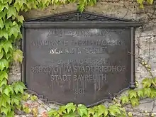Fifty years after her famous cousin, Marianne died in Bayreuth, Germany, at the age of 82. In her estate, the portrait of her cousin was found, which he had sent her from Mannheim in 1778. Only 15 months later, her 58-year-old daughter died. Both were buried in the municipal cemetery in Bayreuth, but the graves can no longer be found. In the course of the years, two memorial plates were placed, one at the Old Coaching House, the other at the entrance of the municipal cemetery.