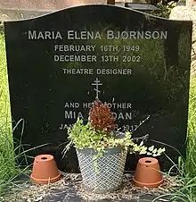 Björnson was course director for theatre design at the Central School of Art and Design. She died in London on Friday 13 December 2002 and was buried in Kensal Green Cemetery. She was 53.[3]
