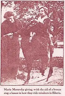 At early 1930-th Edward and Maria had moved to Lakeland, Florida and then to Miami at 1932.[8] They lived in a dwelling called by them Fiction Farm at a southern part of Miami. Maria Moravskaya was known not only as prolific writer and publicist and member of local Soma Club but also as a woman of active lifestyle and many hobbies, include exotic. For example, she was engaged into selection of new breeds of lovebird and domestic duck, training of wild animals and growing of extrinsic plants, printing of books with home-made equipment. Moravsky was travelling in South America where she was rafting rivers in canoe.[8]