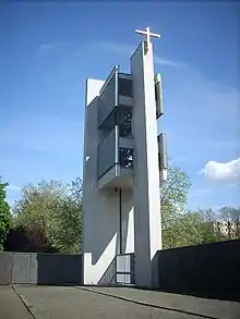 The episcopal ordinariate of the then Roman Catholic Diocese of Berlin commissioned Friedrich Ebert, Hermann Jünemann and Hans Schädel[1] to build the church.[2] In 1960 Cardinal Julius Döpfner laid the cornerstone, and in 1963 he – together with Alfred Bengsch, then Catholic bishop of Berlin, and Louis-Marie-Fernand de Bazelaire, then Archbishop of Chambéry in France – consecrated the church. At that time, the church also served as a parochial church for the Catholic St. Joseph parish of Berlin-Spandau.