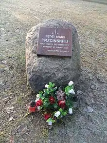 Trzcińska appeared on Radio Maryja and in chauvinist media speaking about the fact that the Nazi German camp in the capital was used in Stalinist Poland as a detention facility for the anti-Nazi resistance. She engaged in a conflict with GKBZNwP successor, the Institute of National Remembrance (IPN), regarding the content of her research, as IPN historians increasingly disagreed with her conclusions, and opposed its further publication. Her copyright request was rejected by the IPN as concerning state property already paid for, including historical documents and testimonies of survivors.[6] Her additional claims made on behalf of a public-monument committee, which unsuccessfully attempted to raise support for a monument dedicated to the alleged much greater size of the German camp extending beyond Warszawa Zachodnia station, a theory Trzcińska promoted in several monographs as well, but that was also refuted by the IPN and other mainstream historians, who consider her fringe theory, based on a single interview, not substantiated enough.[1][2][3][7]