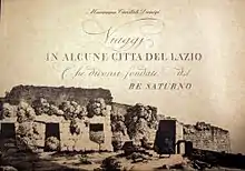Dionigi wrote a monograph on painting and about her travels through Lazio. The story is told in a series of letters from a 50 year old woman. She describes archaeological sites and each letter was accompanied by a sketch. She describes five towns south of Rome which had been believed to have been founded by the mythological god Saturn. Each of the etchings were detailed and accurate. Moreover Dioigi included plans and elevations and transcribed inscriptions.[2]