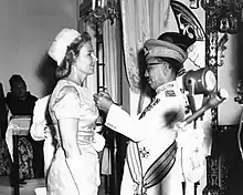 Since Marianne was in the early 1950s one of the very few educated women in Brunei, she became a lady-in-waiting at the court of Raja Isteri (Queen) Pengiran Anak Damit[3] and later the personal secretary to her husband, the 28th Sultan of Brunei Omar Ali Saifuddien III.[4] In this capacity, she was a close eyewitness to the introduction of the 1959 Constitution, the Brunei revolt in 1962, the voluntary abdication of Omar Ali Saifuddien III in 1967 in favor of his 21-year-old son Hassanal Bolkiah, who became the 29th Sultan of Brunei and who is still in reign, the state visit of Queen Elizabeth II in Brunei in 1972, and finally of the Brunei declaration of independence from Great Britain in 1984.