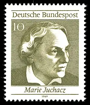 Several cities have honoured Marie Juchacz by naming streets "Marie-Juchacz-Straße" or "Marie-Juchacz-Weg". In 2003, she was also honoured by Deutsche Post in its Women in German history series of postage stamps.