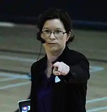 ![]() O'Riordan speaking at University of Limerick Sport Arena in 2012 | |