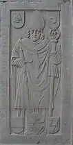 Twenty grave plates remain in the centre of the church, which show reliefs of the Würzburg bishops. The church was the traditional burial place for the prince-bishops' entrails. Their bodies were typically buried at the cathedral and their hearts at Ebrach Abbey.