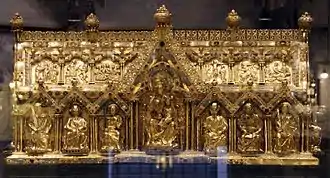 The Marienschrein (Shrine of Mary) in Aachen Cathedral is a reliquary, donated on the order of the chapter of Mary around 1220 and consecrated in 1239. Along with the Karlsschrein, the artwork, which is from the transitional period between romanesque and gothic, is among the most important goldsmith works of the thirteenth century.