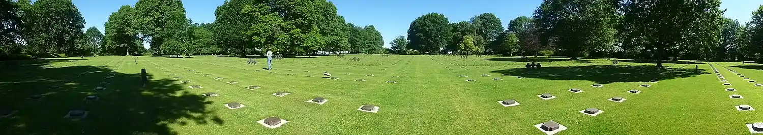 In 1958 the buildings and gardens were created by the German War Graves Commission. The main entrance to the graveyard was built in the style of a Norman village church. The cemetery is now surrounded by a stone wall. The cemetery was inaugurated on September 20, 1961.