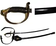 The Marine Corps noncommissioned officer's sword is a sword worn by noncommissioned officers (NCOs) and staff noncommissioned officers (SNCOs) of the United States Marine Corps. The NCO sword was adopted in 1859 and is patterned after the United States Army's foot officers' sword of 1850. The M1859 NCO sword continues service today as the Marine Corps drill and ceremonial sword. The sword's use is restricted by regulation to ceremonial occasions by an NCO or Staff NCO in charge of troops under arms or at weddings and wedding receptions where at least one of those being married is in uniform and has the rank of Corporal or higher.