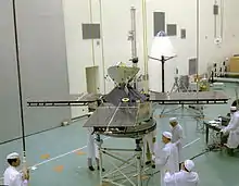 Mariner 4 (together with Mariner 3 known as Mariner-Mars 1964) was the fourth in a series of spacecraft intended for planetary exploration in a flyby mode. It was designed to conduct closeup scientific observations of Mars and to transmit these observations to Earth. Launched on November 28, 1964,[2] Mariner 4 performed the first successful flyby of the planet Mars, returning the first close-up pictures of the Martian surface. It captured the first images of another planet ever returned from deep space; their depiction of a cratered, dead planet largely changed the scientific community's view of life on Mars.[3][4] Other mission objectives were to perform field and particle measurements in interplanetary space in the vicinity of Mars and to provide experience in and knowledge of the engineering capabilities for interplanetary flights of long duration. On December 21, 1967, communications with Mariner 4 were terminated.