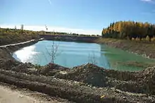 The area contains mostly Upper Devonian series clastic rocks. Carbonate rocks in south-east Estonia and carbonate rock outcrops are very rare in that area. The outcrops can be seen in Mõniste parish on the bank outcrops of Peetri River and on a small bench north of Meremäe village. The rock outcrops from the same formation are situated in Meremäe rural municipality, in the old limestone quarry of Tiirhanna and Marinova dolostone quarry. According to the geological studies of Marinova mineral deposit, the upper half of the roughly ten metre thick dolostone deposit of Pskov formation is heavily crushed and karstified. The dolostone bed mined in the quarry is up to ten metres thick, half of which is above groundwater level, half of it below. The groundwater is not pumped out of the quarry and the rock below groundwater is mined by underwater explosion. The dolostone above groundwater level is characterised by strong crushing and the crumbling of the upper part of the deposit. Dolostone settled below groundwater level is less crushed.[1]