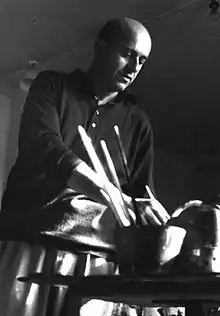 Mario Comensoli was born in Lugano on the 15 April 1922.[1] When his mother died, he was raised by his two sisters in extreme poverty and this sensitized the artist's character and made him aware of the social problems of the poor from the very beginning.[2]