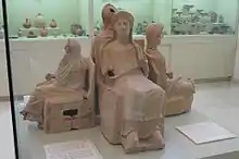 However very few remains of the city have been found except for a temple to Zeus and Aphrodite and many tombs, some of whose contents can be seen in the Polis museum. The sanctuary of Zeus and Aphrodite dates from the 6th to 4th c. BC and was burnt and destroyed by the Ptolomies in 312 BC. The colossal terracotta statue found in it was probably a votive gift, and is the largest clay sculpture found in the island.