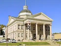Marion County Courthouse is a historic courthouse located at Hannibal, Marion County, Missouri. It was built in 1901, and is a two-story, rectangular, Classical Revival style limestone building. It features an octagonal drum dome topped by an octagonal lantern towering above the two-story portico with four Corinthian order columns.[2]: 5